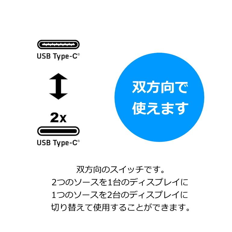 ●USB-CR 完全双方向スイッチです。2つのソースの一方から1デバイスへのスイッチ、または1つのソースから2つのデバイスの一方へスイッチします。