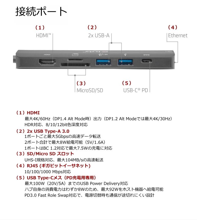 また、本製品のダウンストリーム側のUSB タイプ-C PDは充電のみです。データ通信はできません。