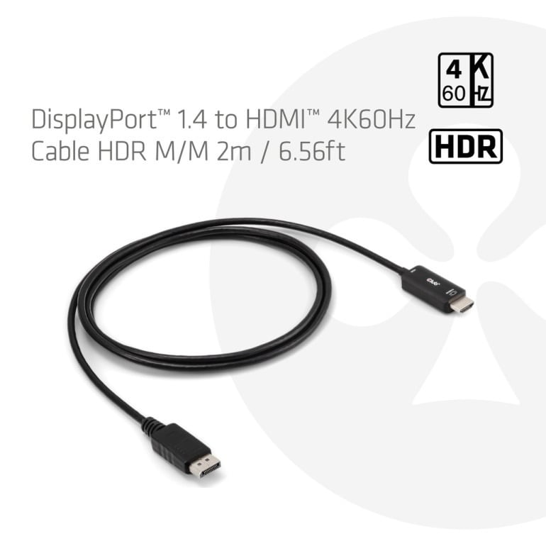 Club 3D CAC-1083 は、HDR対応の DisplayPort 1.4 → HDMI 4K 60Hz 変換ケーブル(オス―オス、2m / 6.56フィート)です。