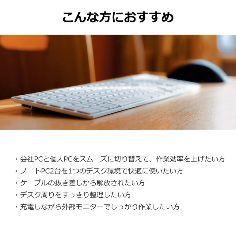 KVM機能をサポート - 1つのキーボードとマウスで2台のPCを制御します。