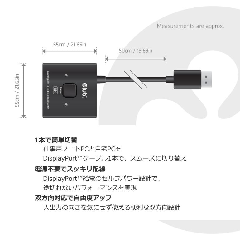 【CSV-1009】Club 3D DisplayPort 双方向スイッチ 8K60Hz / 4K120Hz 2入力1出力 1入力2出力(CSV-1009)