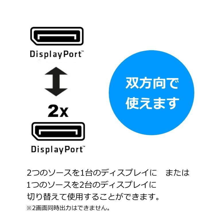 ●映像解像度は最大 7680x4320P@60Hz。HDR、HDCP パススルーをサポート。トグルボタンは、2つのビデオソースまたは2つのモニタを素早く切り替えることができ、両側の青いLEDインジケータは、どちらのポートが動作するように選択されているかを示します。(注意)本製品では一度に映像出力出来るモニターは1台のみとなります。デュアルディスプレイは出来ないことに注意してください。